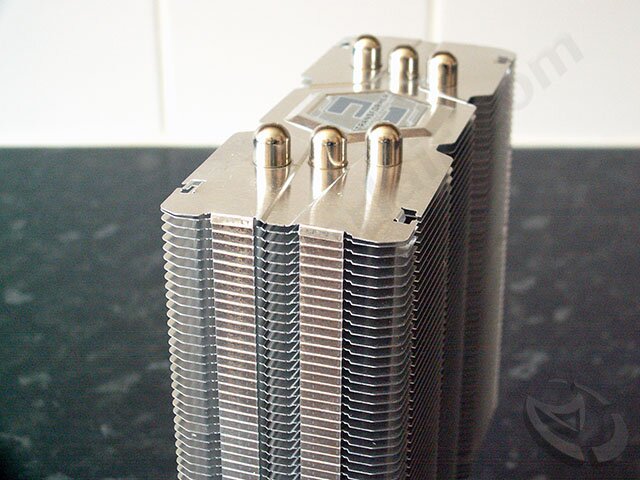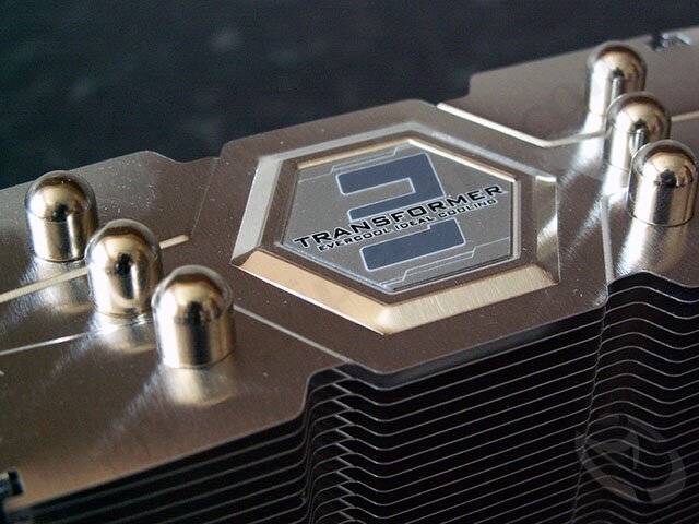 Starting our tour at the top, we can see the aforementioned Transformer 3 logo on the center top of the cooler. Each of the copper heat-pipes are capped off in silver giving the top of the cooler a uniform appearance that should look good through a case window.