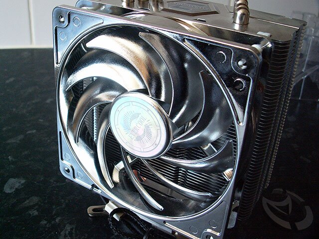 You will have also by now seen the interesting blade design on the fan. The fan has more blades than we have come to expect from a 120mm fan, and each curl around it’s neighbour. This design is slowly becoming popular for it’s noise reduction and CFM of air increase over a standard bladed fan. Again, like the Transformer 4 Plus, the fan on the Transformer 3 is painted silver to match the rest of the cooler. The fan is also nicely sleeved in black.
