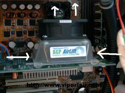 Since this is something that's going to sit on your video card, you may be concerned about it falling or snapping your video card PCB. Rest assured, this will not happen. The AGP Airlift weighs literally nothing. The plastic feet seemed to be pretty good at holding the card still, even with minor moving of the case. I didn't take my PC for a jog or anything, but if you need to move around, like for a LAN party, the Airlift can be taken off in less than 5 seconds. Even if I were to tilt my PC over and it fell, I doubt any damage will be done. I didn't actually try this, so if you break anything, the onus is on you :P