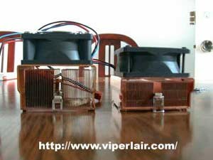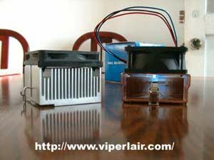 Like the Vantec FCE-6030D, and the CCK-6035D, the CCK-6027D also follows the "thin fin" design. The idea is that by making the fins thinner, you can put more on the heatsink, and the result is increasing the surface area for heat to transfer. I also think that this will allow heat to dissapate quicker, which is good in this case since copper, by nature, retains heat longer than aluminum. In the above pics, you can see that the 6027D heatsink is actually smaller than the AMD retail, and much smaller than the heatsink on the 6035D. By making the 6027D smaller than the 6035D, there are three immediate benefits..., it's cheaper, it's lighter, it may fit better in cramped cases.