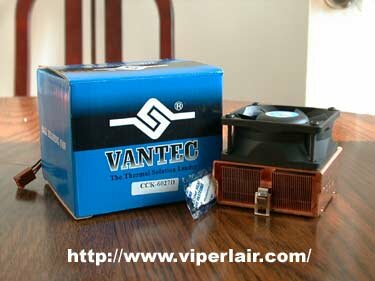 is well known for their cooling solutions, and with their latest copper based heatsinks, they've managed to rank among the very best in performance coolers here and at other sites. The Vantec CCK-6027 is the name of the latest model, and like it's older brother, the CCK-6035D, it's an all-copper design. Where many other manufacturers have gone with gigantic heatsinks, Vantec has chosen to improve upon their last cooler by making it smaller. Surprisingly, this wasn't such a bad move, and in fact, it solves many issues some users may have when compared to other solutions. We'll get more into that later on.