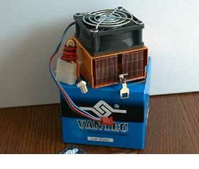Basically, the main advantage with copper is it's ability to quicky transfer heat away from the CPU core. The problem though, is that copper retains the heat longer than an aluminum unit. This is probably why we see such big and powerful fans packaged with these copper heatsinks. The Vantec CCK-6035D is no exception, and bundles the loud, but efficient Delta 38cfm fan with it.