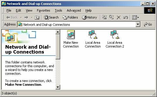 5. Double check the properties for your NIC to ensure that they are setup correctly to use ICS. At the "My Network Places" Window, Right click on your Local Area Connection 2 Icon and select Properties from the drop down menu. This will bring up a window that looks like this: