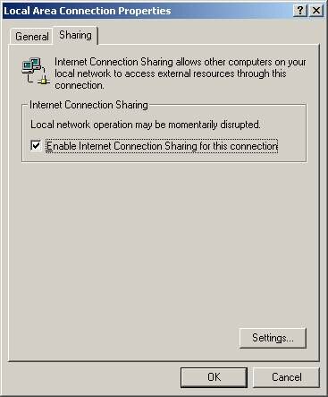 4. As you can see, the box next to "Enable Internet Connection Sharing for this connection" is not checked, thus ICS is not setup to work right now. To share this connection through ICS, simply check that box, and then click "OK". It will bring up a window like this where you will have to click yes or no: