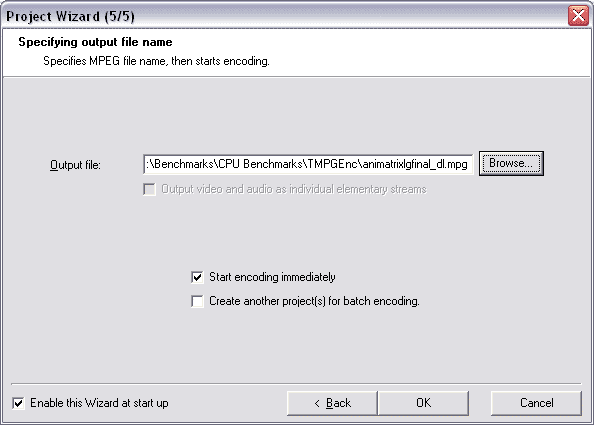 Start by and extracting it into its own folder. Start the app by double clicking TMPGEnc.exe. You'll get a splash screen, which you can choose to never display again, followed by a wizard. We'll be using the wizard, since it accomplishes what we need for the purposes of this benchmark.