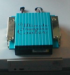 Third, I installed the CDRW and mounted the HDD cooler. I decided to mount the HDD on top to help with the insulation problem and give the out side some much needed eye-candy. Also, it will make upgrading and / or swapping drives much easier.