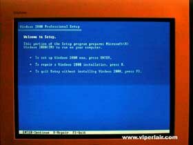 The fastest way to install is to copy all the contents of the .\i386 folder onto your hard drive in a directory of your choice. This is the fastest because your hard drive is typically faster than the CD drive. The easiest way to install Windows 2000 is to put the disk in your cdrom drive and let it boot. The CD is bootable, so if your cdrom supports it, it autorun the installer when you boot up. Although it takes longer overall than installing dirctly off the hard drive, you actually skip one step that takes a few minutes to do normally. You'll see later on what I'm talking about. Alternately, another way is to just use a boot disk, since you're already here if you had to reformat. Just make sure you load Smartdrive and cdrom drivers. If you do it this way, after the bootup, navigate to the cdrom drive and type .\cd i386, then .\winnt.exe, or if you already copied the contents to your hard drive, just follow the first steps I outlined already.