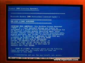 You'll be presented with the End-User License Agreement (EULA). I'm supposed to tell you to read it, and make sure you understand it before going on with the Windows install. If you disagree, you'll have to exit.....