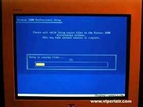Setup will display the default Windows files location directory. Leave it at default, since it will assume where you typed .\winnt.exe, it is also where all your Windows 2000 files are. Setup will then copy all the necessary files to your hard drive. This will take anywhere from two to 10 minutes, or longer (!), depending on the speed of your system. When it is done, it will ask you to reboot. Make sure you remove your floppy drive at this point. In case you're wondering, when you reboot, and your CD drive is set to boot, you will be asked to press any key to boot from CD (if the Windows 2000 CD is in the drive. Do NOT press any key, or you'll just delay the installation process.