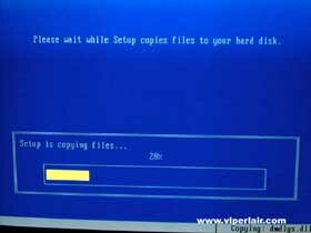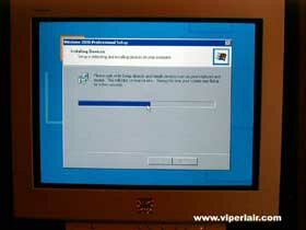 After pressing "Enter", you'll go to the progress screen. As usual, this takes a while. You may as well grab a soda while you wait. When it's done, it'll automatically reboot. Be sure you remove the driver disk in the floppy drive, if it was in there. I'd show you a picture, but I as away from my keyboard (AFK for your 1337 types) too long, and I didn't snap the pic. doh!