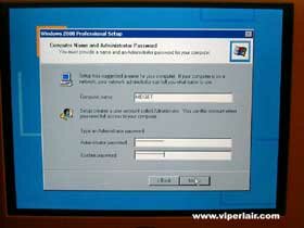Almost done! Click next, and your computer will reboot. You'll now be presented with the Windows 2000 splash screen, followed by the Network identification Wizard.
