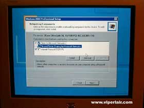 Normally, you should click next, but depending on how your network is setup, you can click on "Properties", after highlighting TCP/IP to assign a static IP address. This isn't always necessary, and the default DHCP works fine if you're the lone computer using the Internet at home.