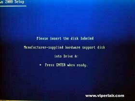 I'm going to go ahead and explain this part anyways, since I got a RAID array myself, and I'm sure some of you also. Like I said, you don't have much time, so press F6 if you need to configure the RAID or SCSI controller, otherwise, ignore it and setup will continue.