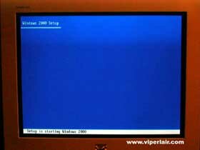 After selecting your RAID and/or SCSI drivers, you'll go on to the next step. You'll be presented with a blank blue screen, with a message saying Setup is starting Windows 2000. This will take awhile, anywhere from 2 minutes to who knows?(!) Again, it'll depend on how fast your machine is.