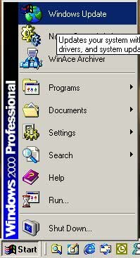 The next few steps are a matter of debate. It used to be with Windows NT, you should install the Windows NT Service Pack before doing anything else. Personally, I still do this myself, but the choice is yours. After running more updates later on, you need to do it anyhow. Some software may not install properly, depending on what service pack is already on the system. Currently, Windows 2000 is installed without any service packs on initial setup. Anyhow, I suggest running (no need for Service Pack 1, since all service packs are cumulative), and then heading to Windows Update: