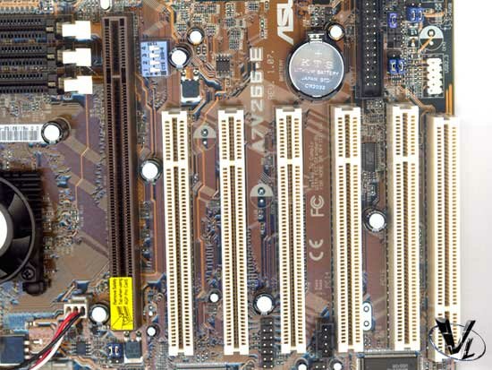 There are 5 PCI slots available, in addition to the AGP Pro, as well as an ACR slot. Being so used to Abit boards and their 6 PCI slots, I'll admit I was a little disappointed there is one less here, but I doubt this will be a concern for most people. The ACR slot is useless though, and I imagine it will go unused for most of you.