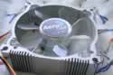 The four blue LEDs light up the fan pretty good. They are no competition to the newer CCFL fans but they still glow brightly. If you have no other lighting in your case you will defiantly notice this fan. The Aluminum surround is also a pretty neat design, being a nice break from the standard black plastic.