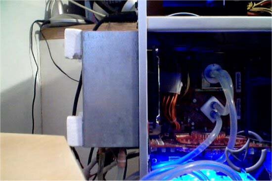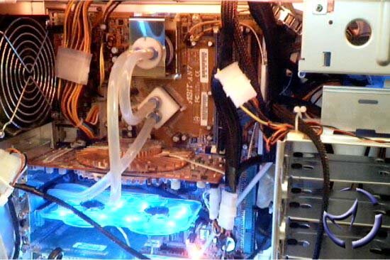 Barton 2500+ @ 3200+ (), MSI FX5950 Ultra 256-VTD, Corsair TwinX512 PC3200, W&CC Watercooling system with CPU and Northbridge blocks, Aerocool Aeropower II 520w Titanium PSU, Hauppage TV Card, Vantec Spectrum PCI Fan cooler, LiteOn 24x CDRW, WD 80gig HDD, Vantec Nexus 305 Rheobus and CCFL Inverter plus 2x CCFL's