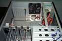 By removing the two thumbscrews in the back of the case and lifting the latching door handle, I opened up the case. I found that the handle even though it ruins a part of the lines of the case (it's not flat and it stands out), it was very convenient for opening the case. In fact, I never bothered to put the thumbscrews back on! After removing the side panel the insides look a little something like this: