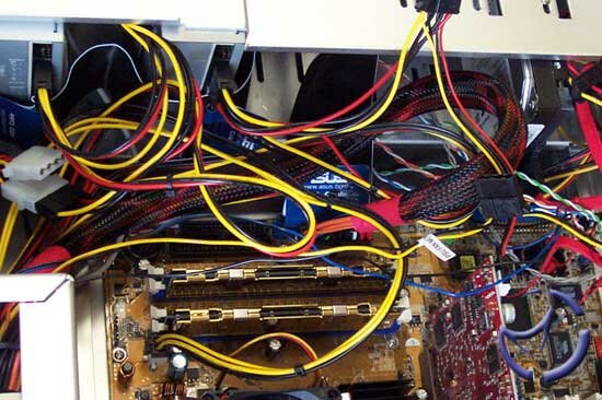 Normally my wiring job isn't that bad, but I'm trying to illustrate a point. Above is what a typical setup may look at if you simply plug in devices, and not bother with cable routing.