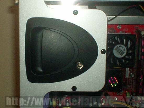 The front bezel is very nicely designed. There is a row of curved lines going from the bottom to the middle. The front bezel is not made of aluminum; rather it is made of extremely strong plastic. The lockable door covers your drives and power button, making it impossible for anybody to turn on your PC or tamper with your CD-ROM drives unless they unlock or break the door. The door isn't a full-proof way to deter people from tampering with your PC, since it can be broken if somebody really wants to turn on your computer, but it will stop your kids or room mate from messing with your system when you are at work.
