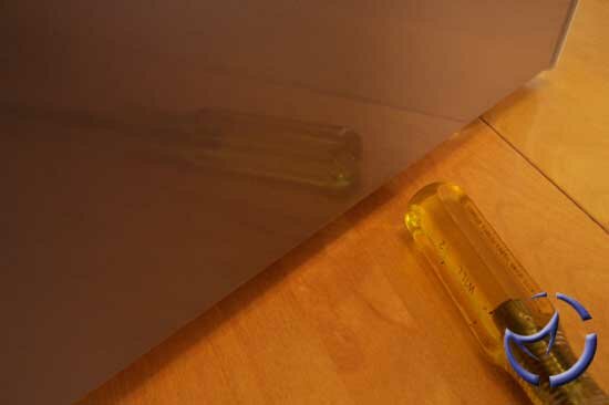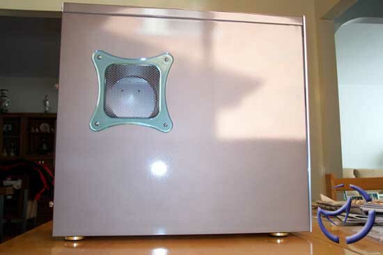 One nice feature is the painted side panels (as well as the top panel). The paint is of car paint quality, though under a special garage light, we did notice a sort of "dusting" over the surface. This is unnoticable under normal light though, so I doubt anyone will bother wet-sanding it any further. As you can see above, the paint is very reflective, and will certainly impress people (who are into these things at least). At this moment, only metalic silver (4 coats) is available, but you can expect a high gloss black (6 coats), as well as an aluminum colour in the near future.