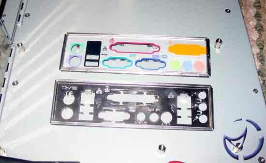 I then pulled out the ATX rear bracket as the Asus a7n8x-E deluxe does not use a standard port bracket. But here is a quick shot to make a comparison.