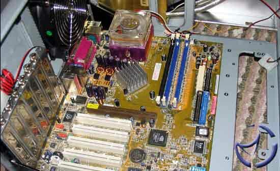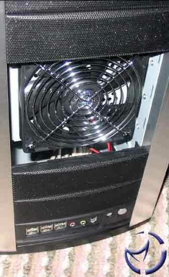 With all of those items inside, it was simply a matter of installing the rest of the items into the case and plugging in all the molex connectors and IDE device cables. I realize my install was messy, but I spent the most time trying to keep all the wires away and off of the motherboard, and tuck all the excess wires into the 5 ¼ bay area. It worked out pretty well. The big black box next to the motherboard on the right is the Cross Flow Fan. It literally blows air across the full length of the motherboard. It is a welcome sight indeed.