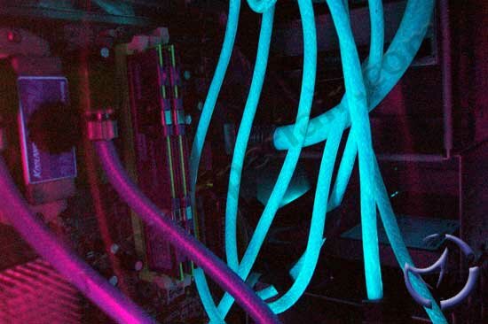 In terms of customizations, nothing touches the X-Connect. The X-Cables are well built, and it's going to take a lot to do any damage to them if you're the type that constantly pulls power connections out for hardware upgrades. The UV glow is a nice touch, and compared to regular power cables, the winner is obvious in this beauty contest. I would like to see at least one, if not two SATA power cables included with a future revision as many enthusiasts are moving in that direction. I would also like to have a couple more point-to-point Molex cables in case a user doesn't need the Y-Type connection. Although I can appreciate how well built the cables are, they can be difficult to work with in small enclosures because they are not very flexible compared to unsleeved cables.