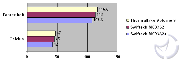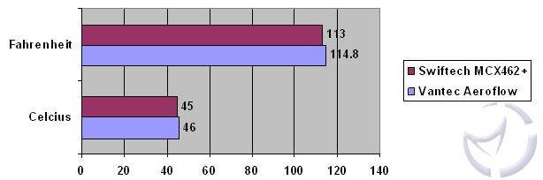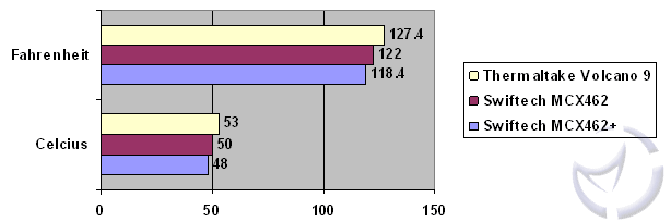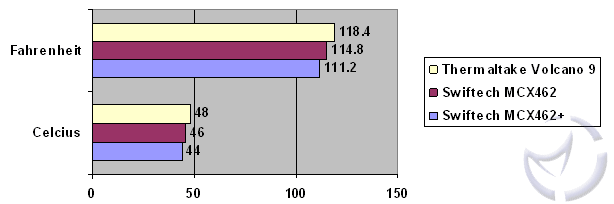It's been a long time since I've seen sub 45C temperatures, and the MCX462+ accomplishes that feat. I shouldn't have to tell you that the fan is extremely loud at this point, but I suppose if you wear headphones while fragging, it doesn't matter.