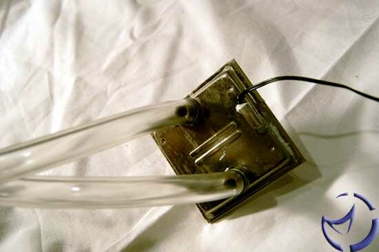 The reservoir has two openings - one is positioned slightly below the other. The leftmost opening is plugged with a yellow cap and has two wires coming out of it. This is the fill meter, which monitors how much water is present in the reservoir - if there isn't enough liquid for the unit to properly function, the "FILL" alarm will go off (a repetitive beeping, and the word "FILL" on the LCD,) until the unit is satisfied that there is enough water in the reservoir. The other hole is plugged by a screw in cap and is the location for putting the distilled water and additive mixture into the unit.