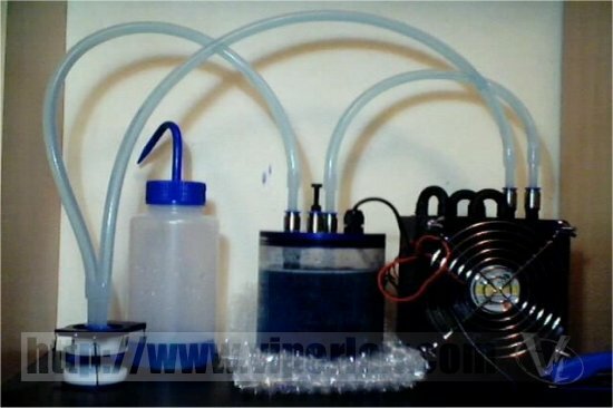 Once that's done, fit the system together with the pipe work in the correct order i.e. radiator outlet to pump inlet, pump outlet to waterblock inlet, waterblock outlet to radiator inlet. Using the supplied water bottle fill the system up with distilled water and some form of antifreeze or water wetter mix and fire up the pump. As the water pumps around just fill the reservoir as needed. After a few minutes the air in the system will be expelled and your ready to go.