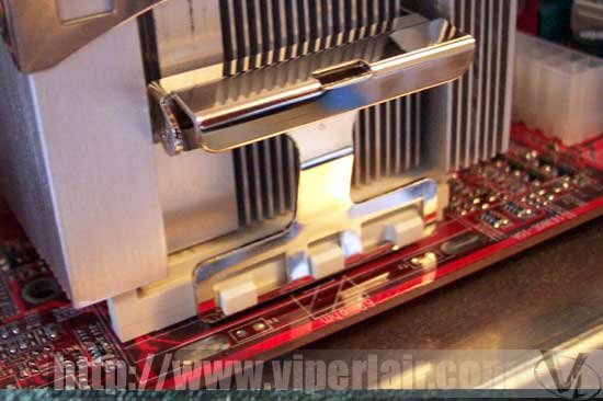 Both ends of the clip use all three mounting prongs on the Socket-A socket. This is useful for a couple reasons. For one thing, it provides a very secure installation, and you won't need to worry about the heatsink shifting while moving your case around. The other benefit is if you've broken a prong in a previous heatsink install, you can still use this heatsink.