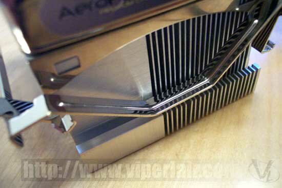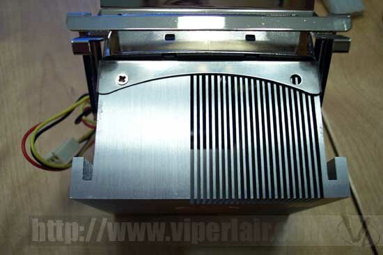 Like the Athlon Aeroflow, the P4 version is constructed mostly of aluminum. There is a copper core embedded into the base, and it's lined up perfectly with the P4 core upon installation. The core does not occupy the height of the heatsink, thus creating the same windtunnel effect as their Athlon version. The same criss-cross pattern directs airflow through, and then away from the base of the heatsink.