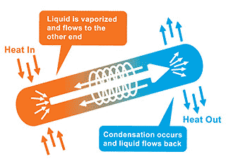 Much like the Aerocool HSFs we've reviewed, the Hyper 6 uses a series of heatpipes (six to be exact, hence the name) for heat dissipation. The diagram below is an illustration of how this heatpipe works.