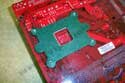 Place the CPU into the socket, followed by the heatsink and you're almost done. There is no "right side" to orient the heatsink, though it's important to have the fins face towards the edge perpendicular to the clip sockets which are the next step in securing the heatsink.