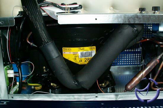 The Compressor – Exactly as it says on the tin, the Compressor in the VapoChill unit sucks the R507* refrigerant in its gas state from the Evaporator and puts it under a great deal of pressure, pushing the widely spread gas molecules together. This increased pressure has the side effect of creating heat.