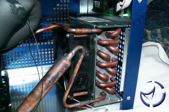 The Evaporator – The molecules of the liquid disperse and evaporate back into a gaseous state, absorbing the heat from the CPU as part of the process, and in turn cooling the CPU. The gas is then passed back into the compressor and the entire cycle starts again.