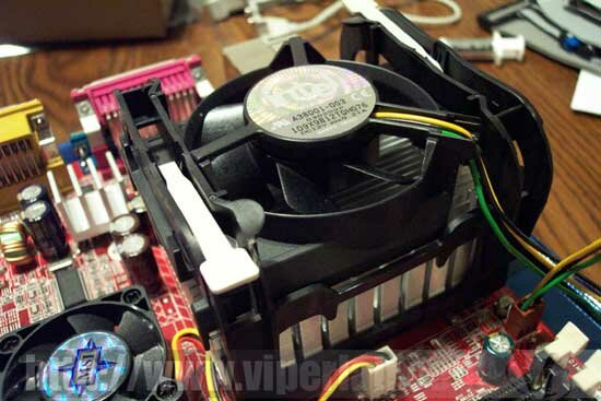 Cooling was done with the stock Intel heatsink. I tested with a Thermaltake Volcano 7+ as well, but the copper heatsink didn't really do much to aid in our overclocking endeavor. vCore was boosted to 1.8v, and the ram timings were set to the most conservative settings.