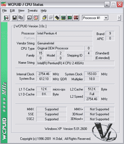Although only 1.5V is needed for the P4, make no mistake, ...this is one hot puppy. Even then, it doesn't run as hot as the fastest Athlons, which is why a large heatsink and a low RPM fan was all that is needed for the CPU. Full load temperatures for the 2.4B range from 53-56C which isn't too bad with stock cooling. The reason why I think the heatsink deserves mention is the fact that it's so well designed. It's easy to install and is silent. Enthusiasts, however, may probably choose a beefier cooling solution.