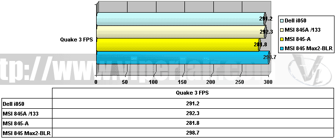 It's getting old, I know, but Quake 3 is still a decent benchmark for almost anything. For motherboards and CPUs, we run at the lowest settings and fire away. It's interesting to note that the RDRAM system is faster than the stock DDR setup, since their FSB speeds are equal.