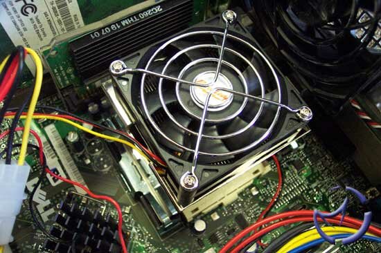 Installation will vary in difficulty depending what you have. If you have a Dell PC, the hardest part will be removing that fan shroud. The heatsink was a little tough to remove as well since they used some sort of adhesive to attach it to the CPU. Anyone with a DIY setup will have no problems setting up the PL-P4/N. Simply remove your old heatsink/fan, and P4 Willamette, drop in the adapter, Northwood, and attach the power to the adapter. Mount the included heatsink, and you're done.