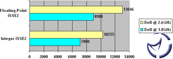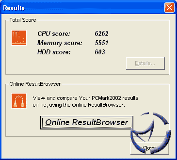 As with the Arithmetic benchmarks, the PowerLeap PL-P4/N 2.6GHz MMX scores are marked improvement over the original 1.8GHz MMX scores. Now, on to the PC Mark 2002 results...