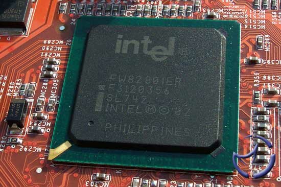 Along with the Intel 865PE, and just as important is the ICH5/ICH5R Southbridge. Some of the supported features are USB2.0, SATA, 10/100 LAN, Intel's Communication Streaming Architecture, and six-channel audio. There are two items that will be of most interest though, and that's Soft SATA RAID support (present only in the ICH5R) and Hyper-Threading. The Integrated Intel RAID Technology is interesting because board manufacturers no longer need to add a 3rd party RAID controller. This should save money (for manufacturer and consumer), and PCB real estate. Our review board adds a third party controller though.