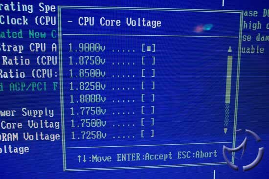 You got some good voltage options, which is a must when overclocking. The ability to add some extra juice is sometimes the difference between a constantly crashing setup, or a rock solid PC. You can go as high as 1.925v for the CPU, 2.8v for the memory, and 1.65v for the video.