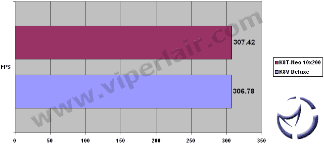 A bit of a surprise here as the K8V lags behind the K8T in both gaming benchmarks. For kicks, I fired up Quake 3 as well, and the K8T took that one also. The differences in gaming performance is minor though, and the K8V is still plenty fast.