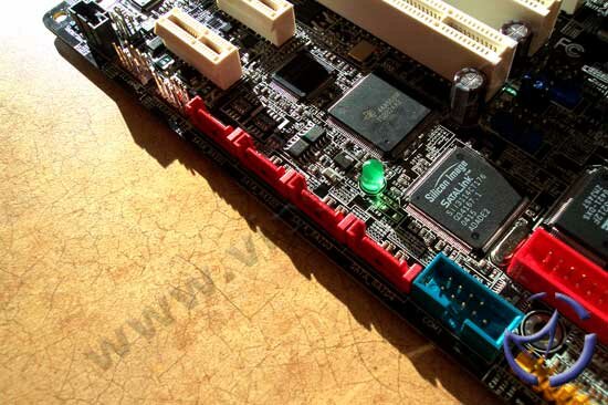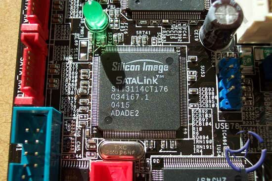 Along with the ICH6R, we have a Silicon Image 3114R RAID controller and an ITE IDE RAID controller. The Silicon Image controller manages four SATA connections and supports a plethora of RAID methods, which include JBOD, RAID 0, 1, 10, and 5. The ITE RAID controller is strictly PATA (the two lower IDE connections) and supports JBOD, RAID 0, 1, and 0+1. Therefore, in total we have eight SATA connections and three PATA connections, bringing a total of up to 14 storage devices you can possibly use with this board.