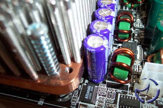 The capacitors (to provide and regulate the juice for the processor) are a little close for comfort, but does not interfere with heatsink installation.