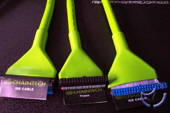 There are round cables included, matching the Chaintech colours. Although I'm not a big fan of round cables, there doesn't seem to be in degradation in hard drive performance, but I would have liked standard, flat IDE cables. I prefer flat cables because I find them easier to fold, and hide, but I know some of you disagree, so to each their own.