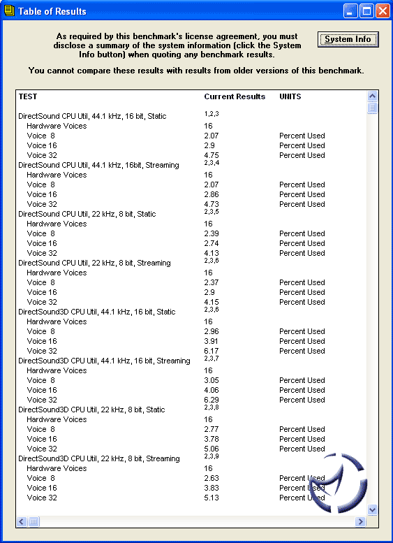 CPU utilization peaked at about 6%, which is a bit higher than the Realtek solutions we've worked with in the past. With 2GHz+ horsepower, I don't think a few CPU cycles are going to hurt. Sound quality from our Logitech Z-560s was excellent, for both music and game playback. Even the MP3-playing-while-transfering-300MB-of-files test passed with flying colours. With our Audigy, I would sometimes get occasional crackling when attempting that chore, but it worked fine with the CMedia.